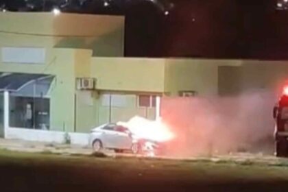 Carro estacionado pega fogo próximo a posto de saúde em Itapeva