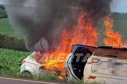 Colisão frontal na SP-249 provoca incêndio em veículos e deixa três mulheres feridas