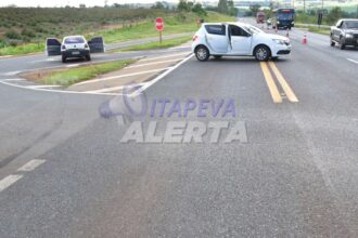 Colisão impactante no centro de Itapeva/SP: Carro em movimento bate em veículo estacionado e capota