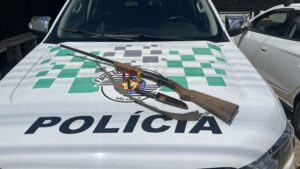 Após algumas horas de vigilância, a equipe encontrou um homem portando uma espingarda calibre 28, marca 8. Ao perceber a aproximação da viatura, o suspeito tentou fugir para dentro da mata, mas foi detido pelos policiais. Segundo a corporação, a arma estava pronta para o uso.