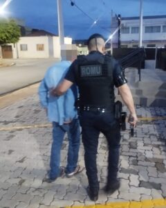 Durante patrulhamento pela região, a equipe localizou o homem em frente a uma residência. Contra ele havia um mandado de prisão em aberto.